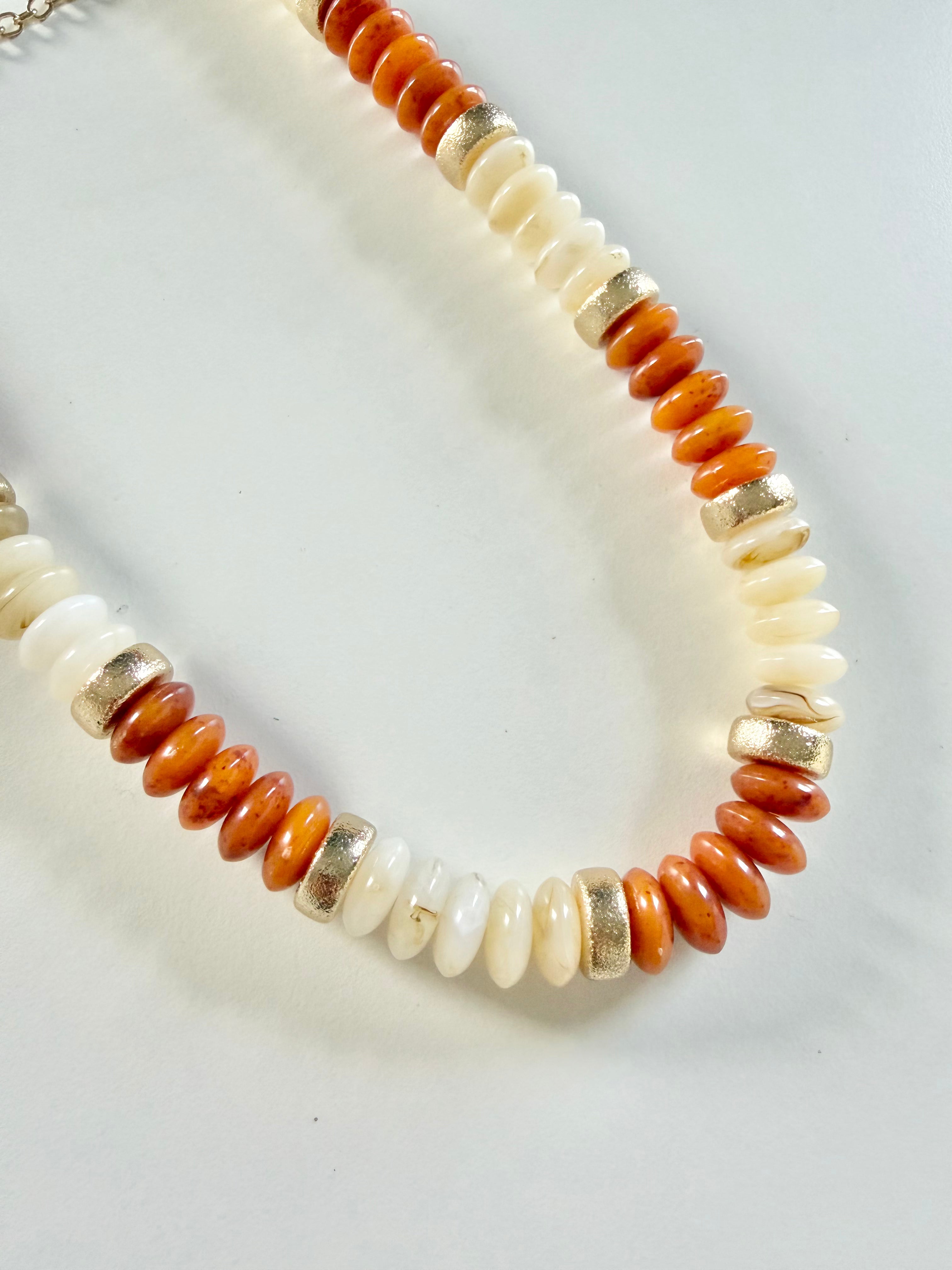 Beaded Acrylic Choker - Orange/Cream - FINAL SALE