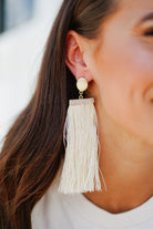 Crystal Bar Tassel Earring - Ivory - FINAL SALE