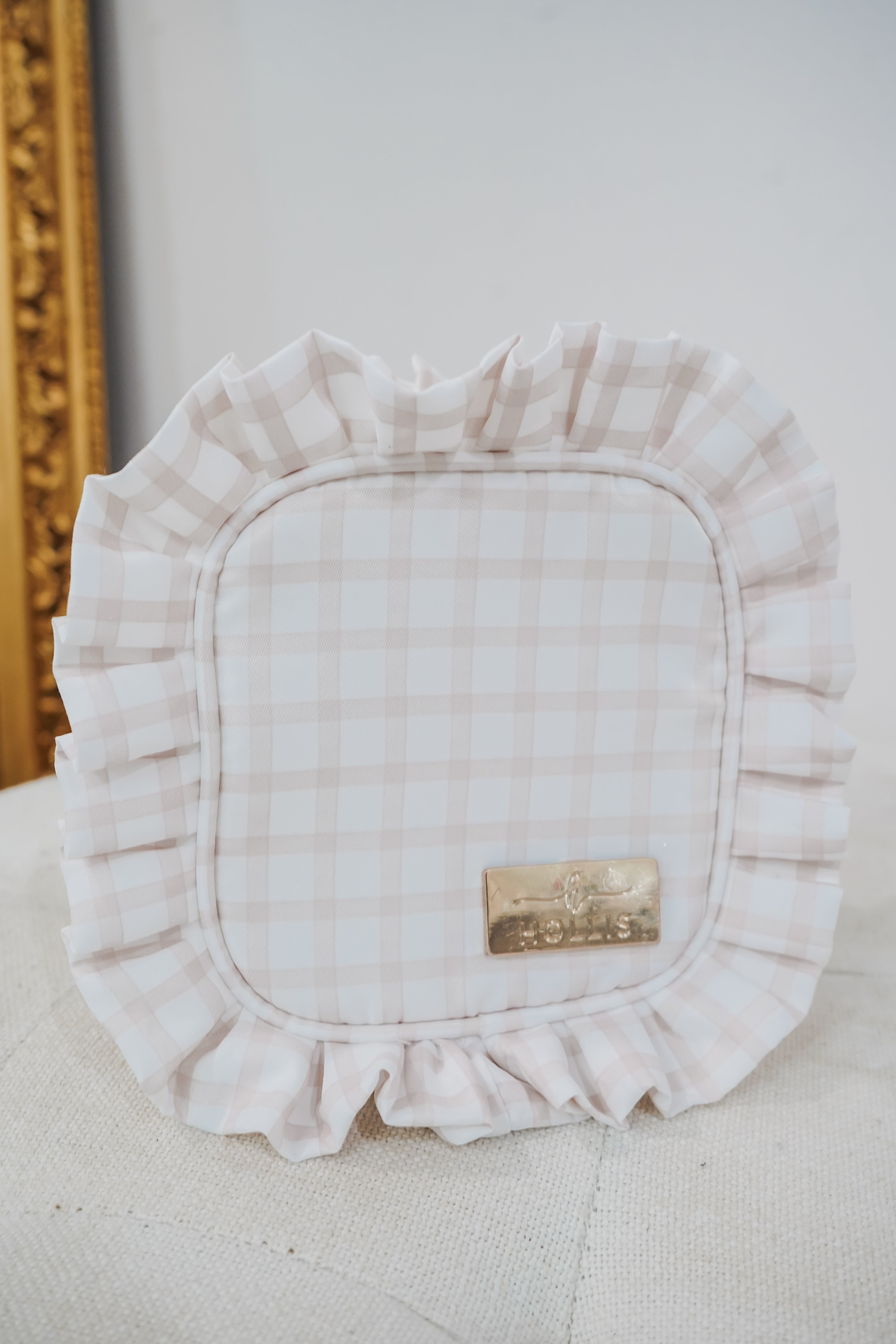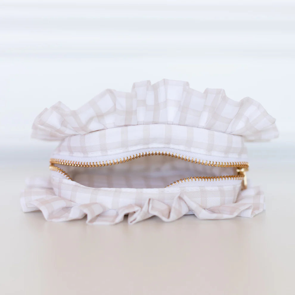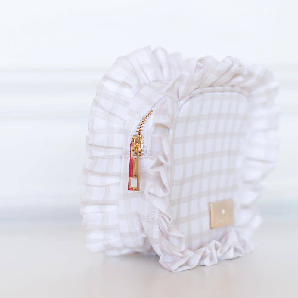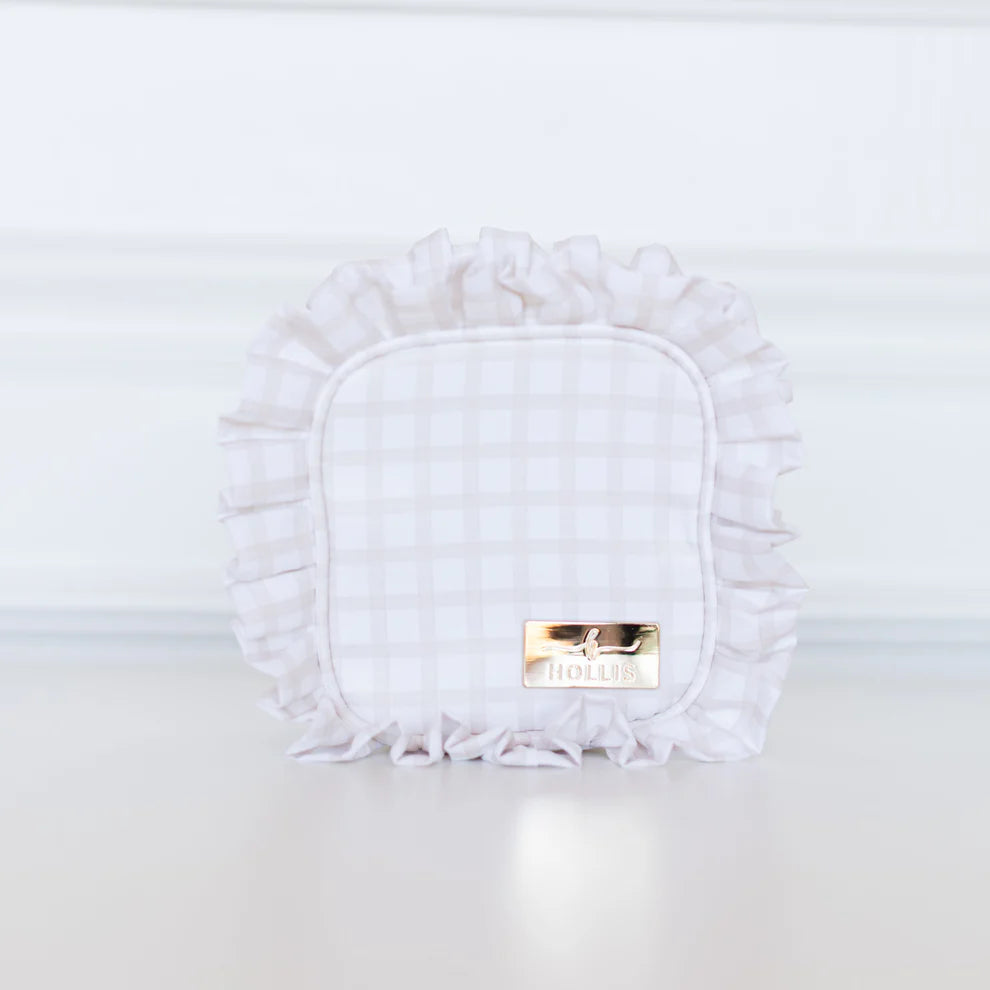 Crafted from our signature lightweight, wipeable ruffled nylon, it’s ideal for storing chargers, AirPods, watches, or small accessories. Keeping everything neat, secure, and tangle-free. With dimensions of 4" x 2" x 4", it’s the perfect petite companion to slip into your tote, backpack, or weekender.