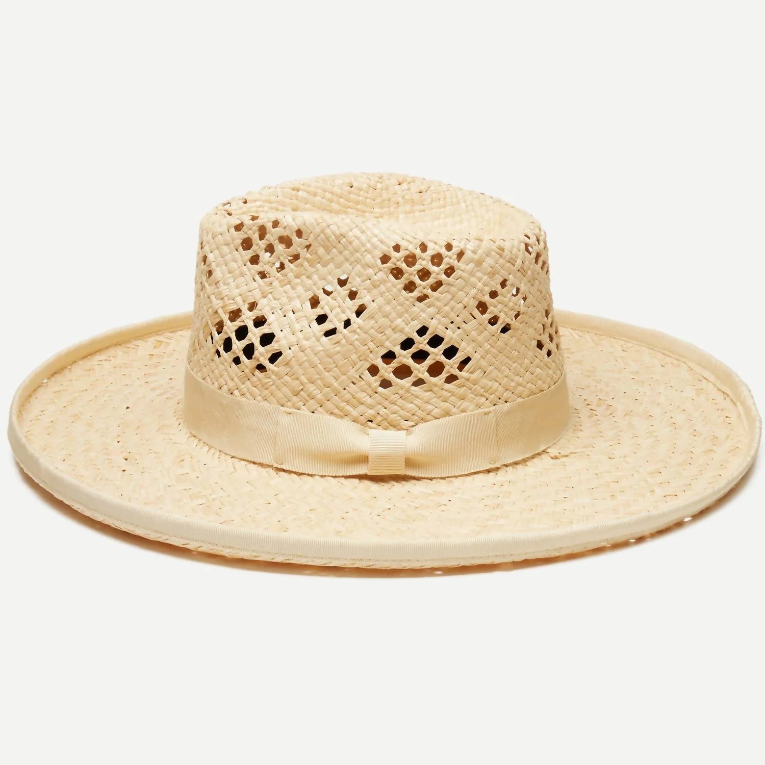 Not only will this hat get you tons of compliments, but it will also keep the sun out of your face which is a must! Wear it with any outfit for the perfect finishing touch.Made of 100% woven raffia straw, our Pietro wide brim sun hat features a gros grain ribbon trim with a tacked down bow and a pencil curl brim. Its open weave pattern around the crown allows for air ventilation for a cool and shady feel.