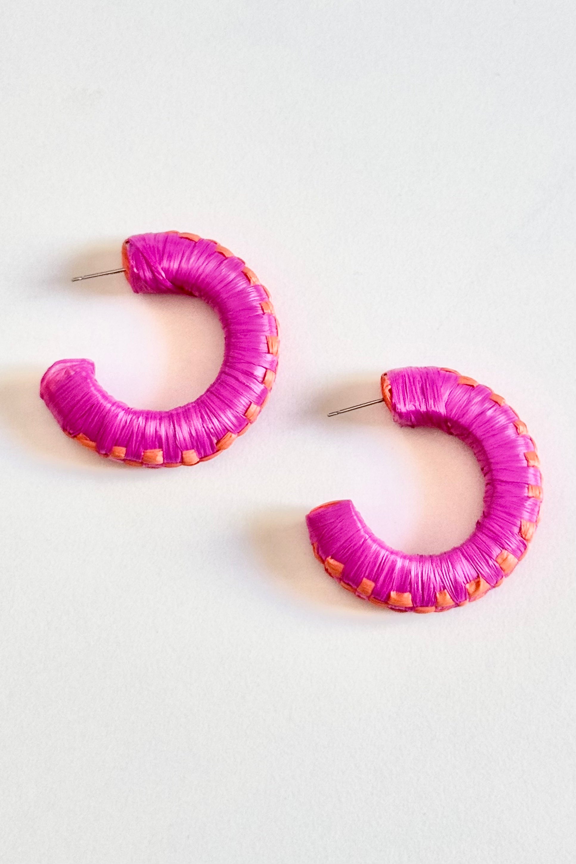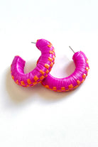 Introducing our Pink Checkered Hoops made with pink and orange checkered raffia! Add a touch of chic to your outfit with these stylish hoops. Perfect for a summer day out or a night on the town. Get yours now before they're gone! Final sale.