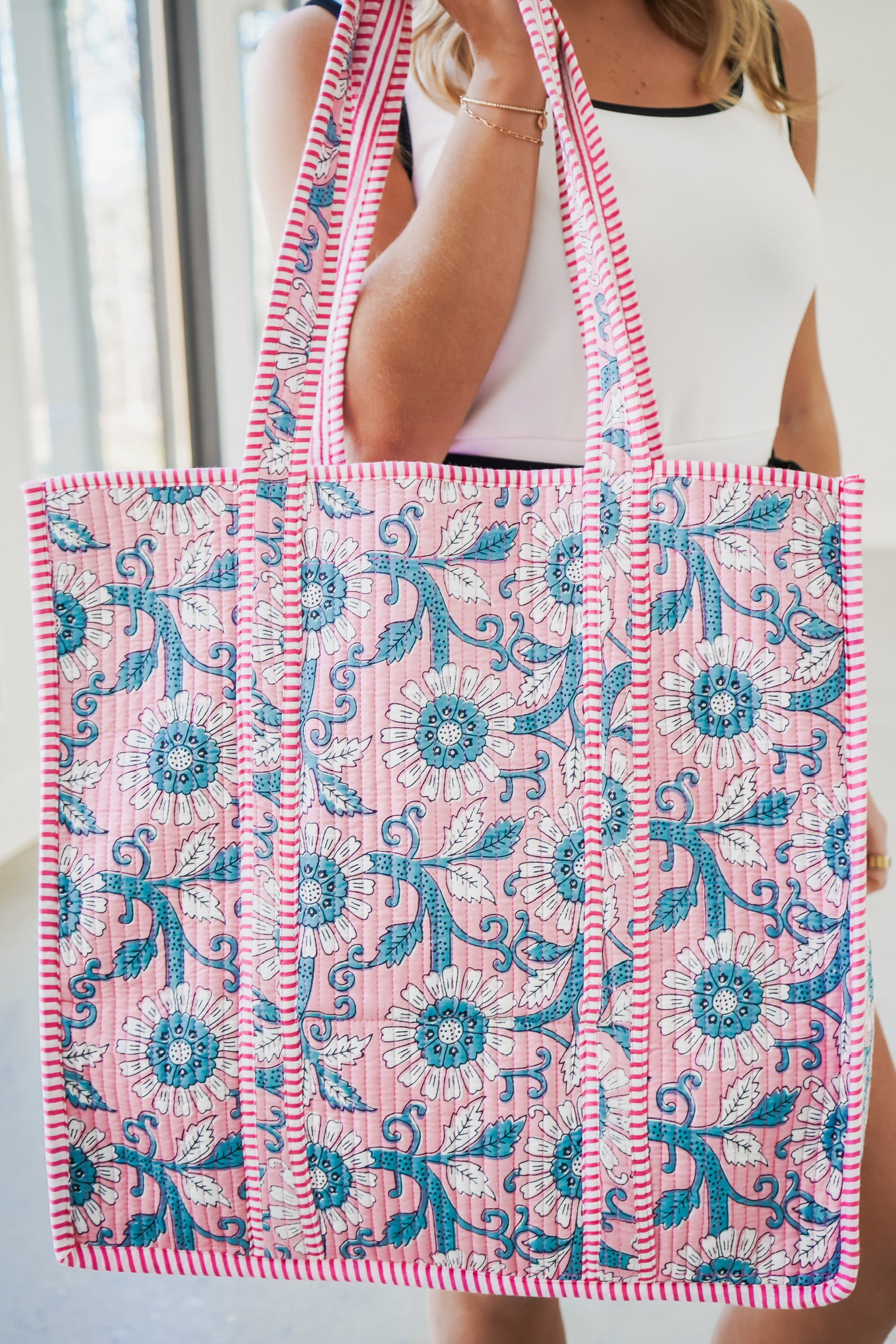 Quilted Tote Bag - Pink/Blue