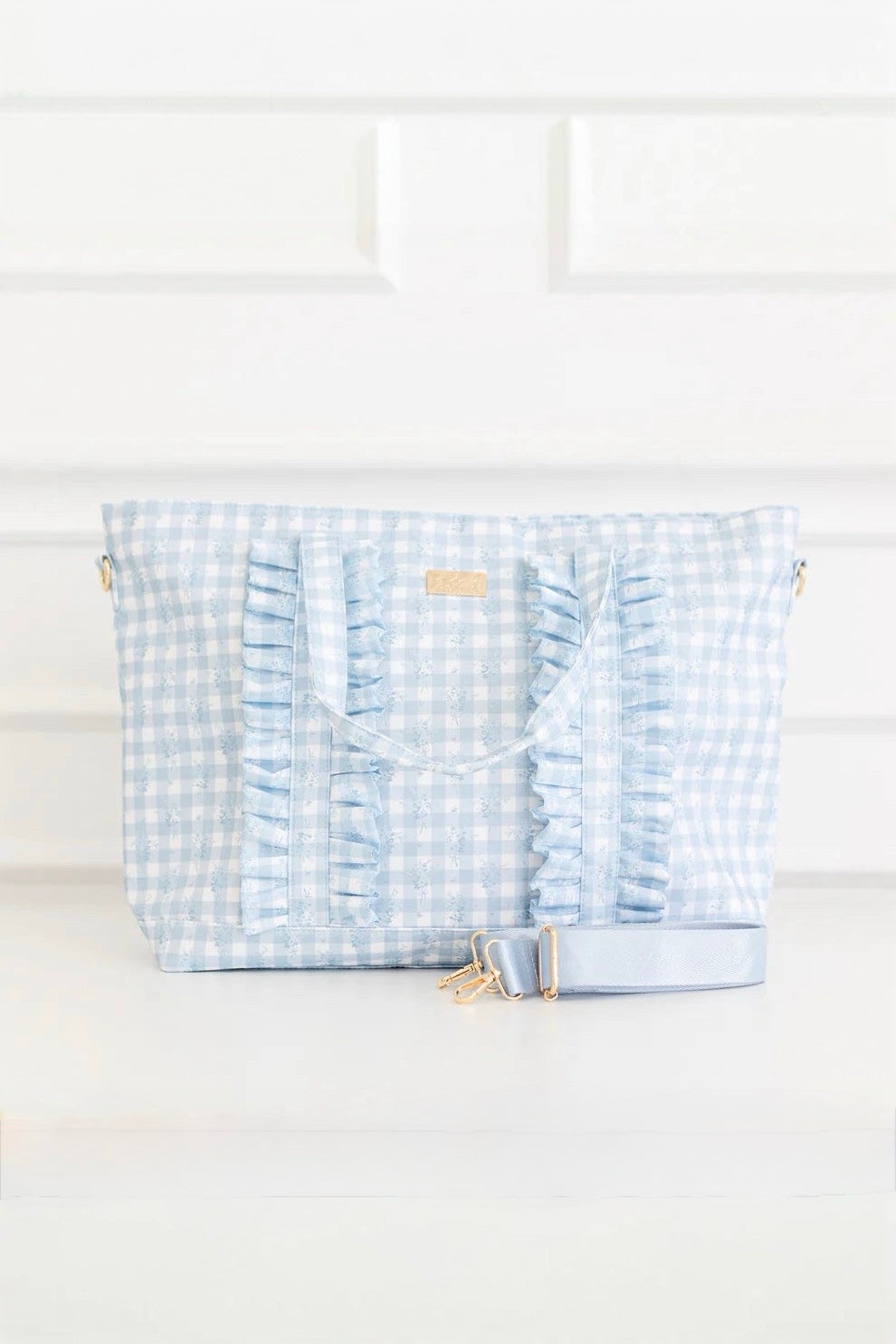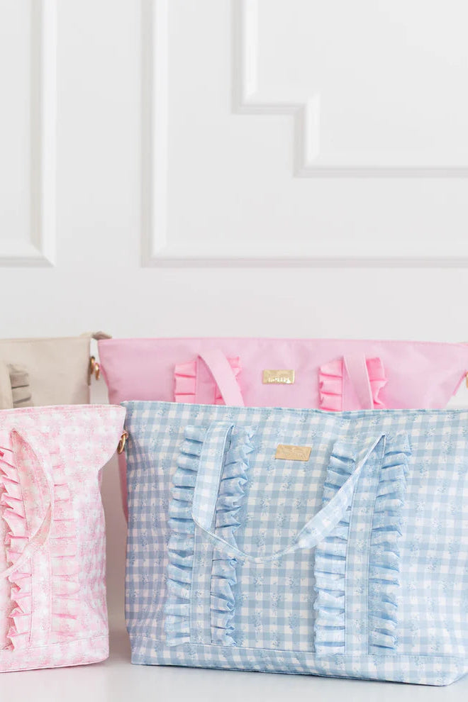Ruffled Nylon Tote Bag - Blue Floral