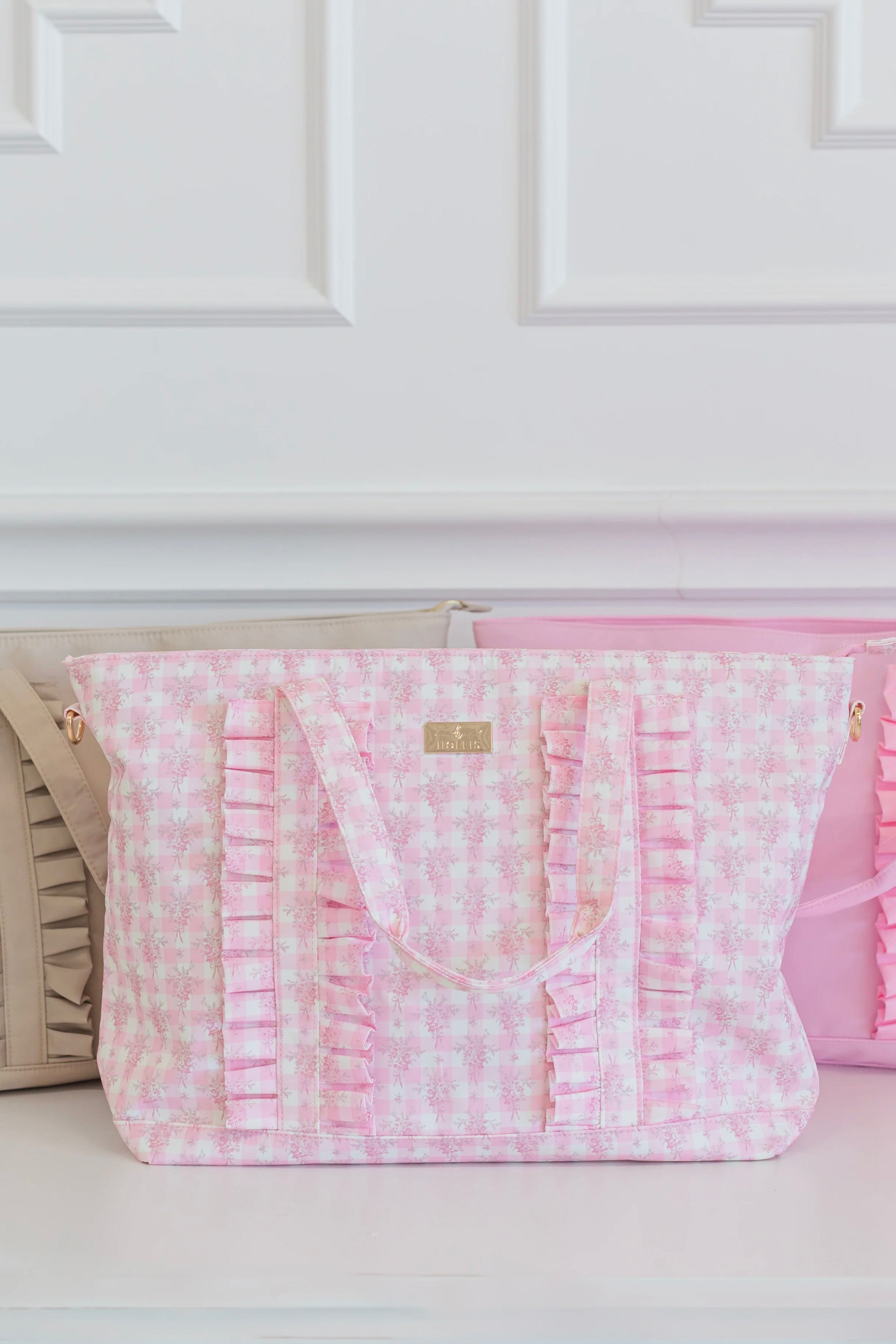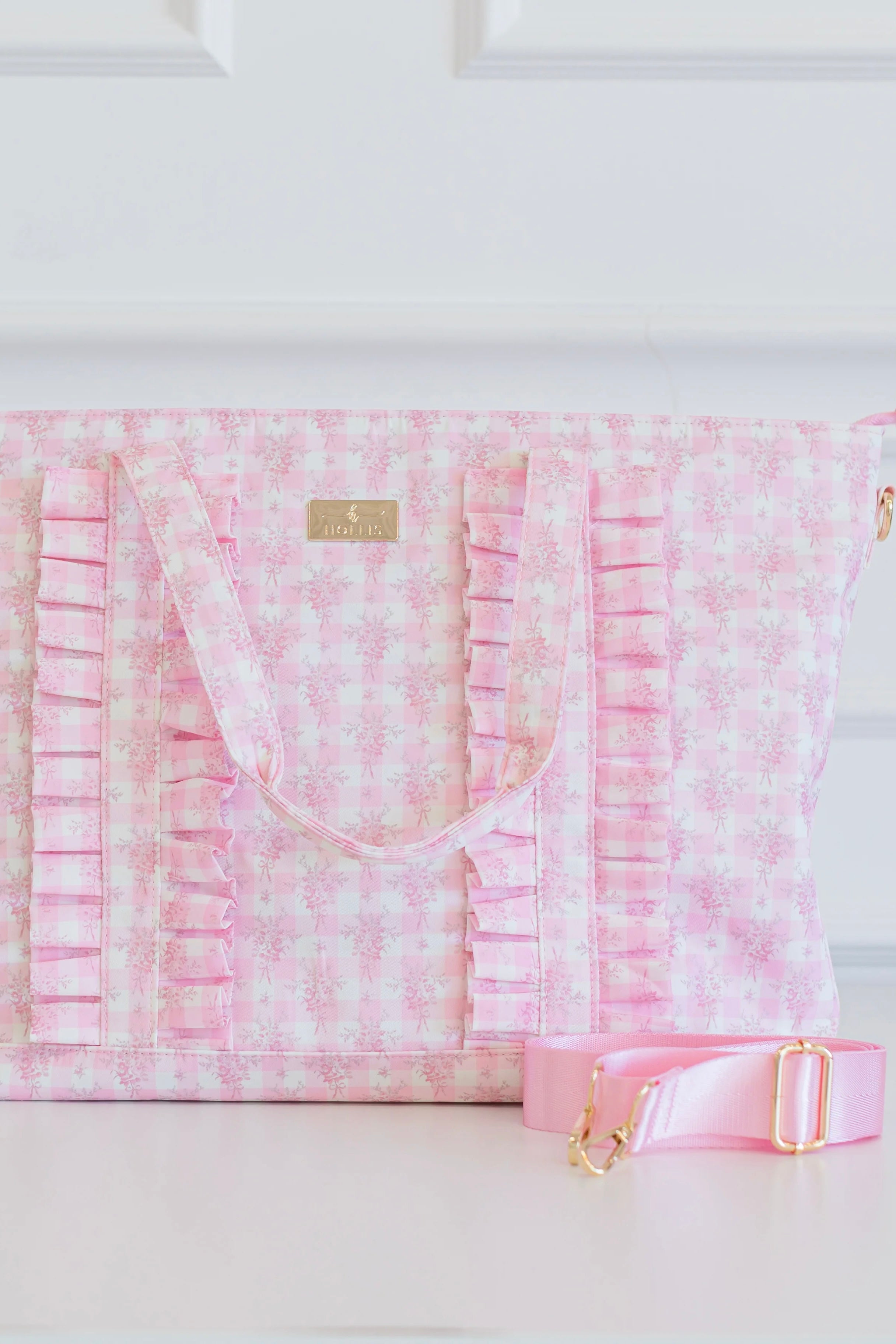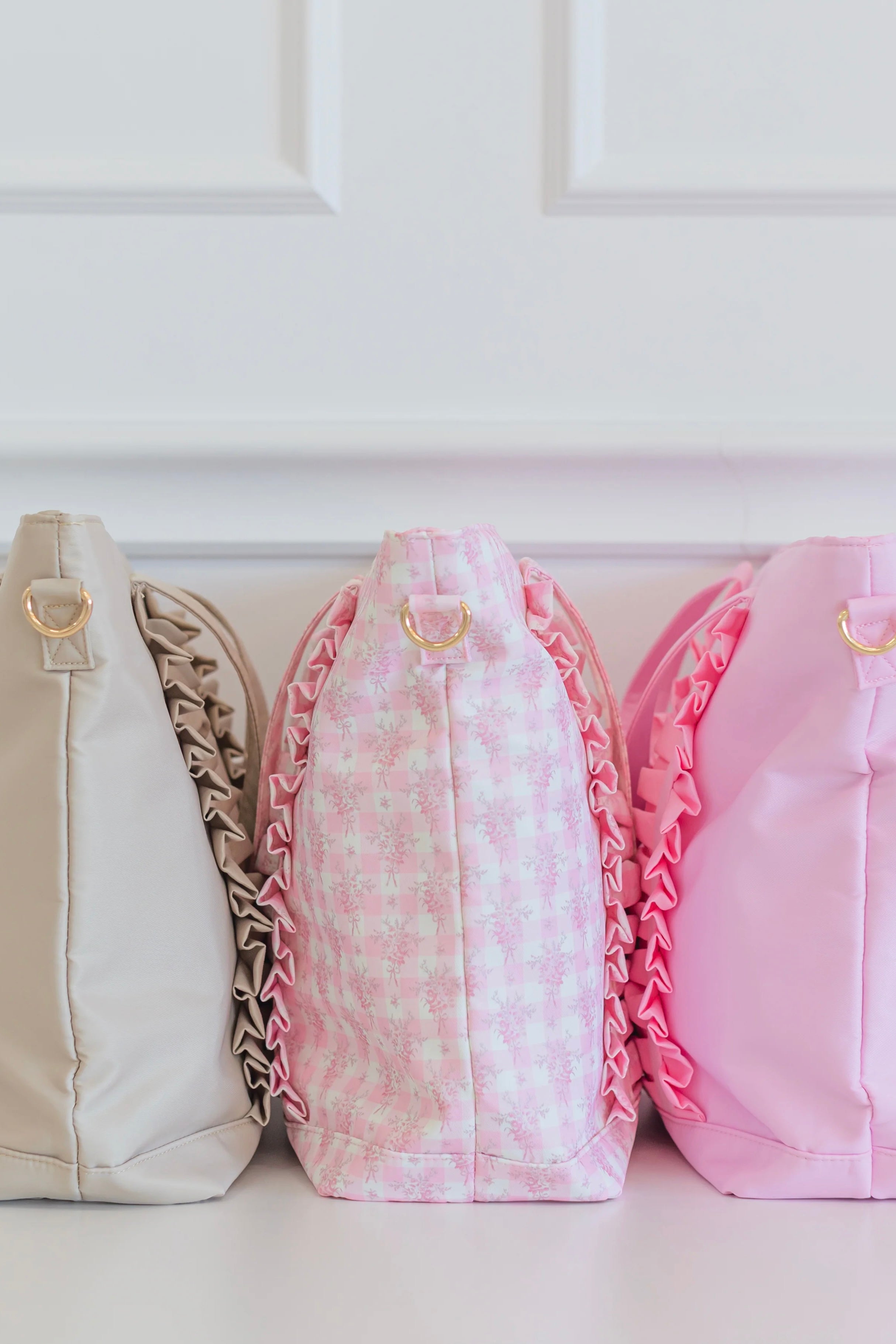 Ruffled Nylon Tote Bag - Pink Floral
