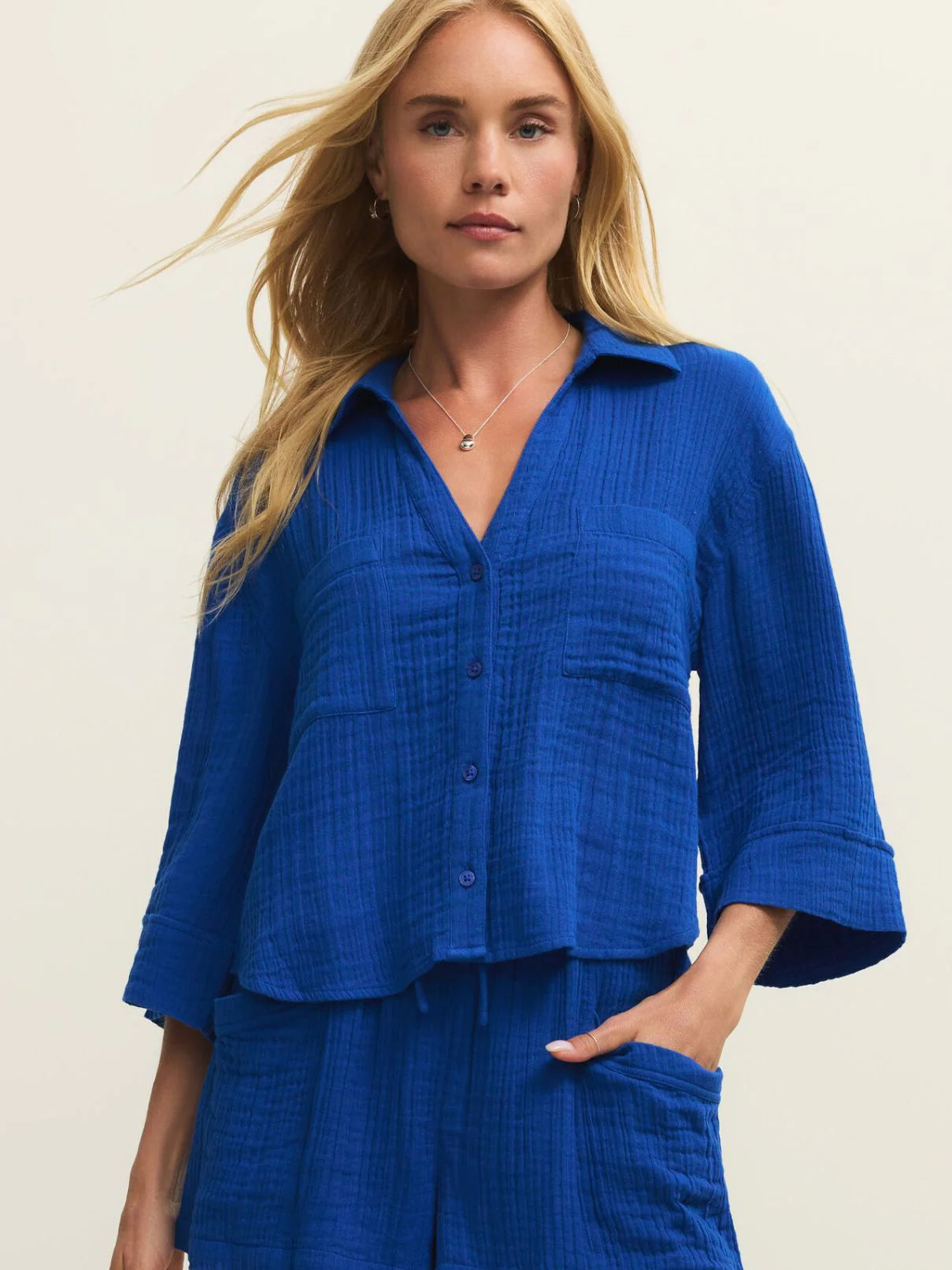 Z SUPPLY The Perfect Linen Top - Blue Light