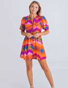70's Button Puff Sleeve Dress - Orange - FINAL SALE