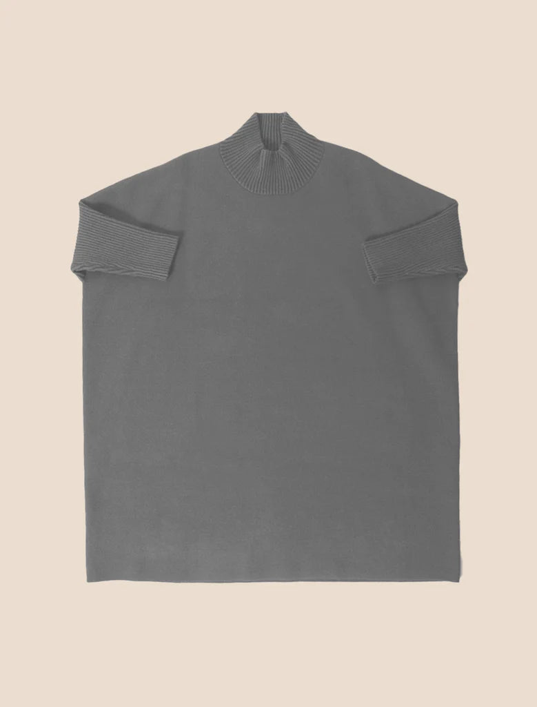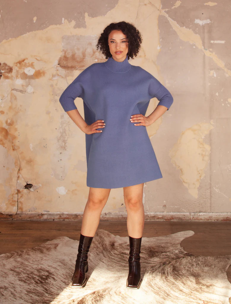 OVERSIZED BOXY DRESS WITH SCULPTURAL RIB TURTLENECK AND FITTED 3/4 SLEEVES