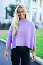 Oversized boxy sweater with fitted rib turtleneck & 3/4 sleeves