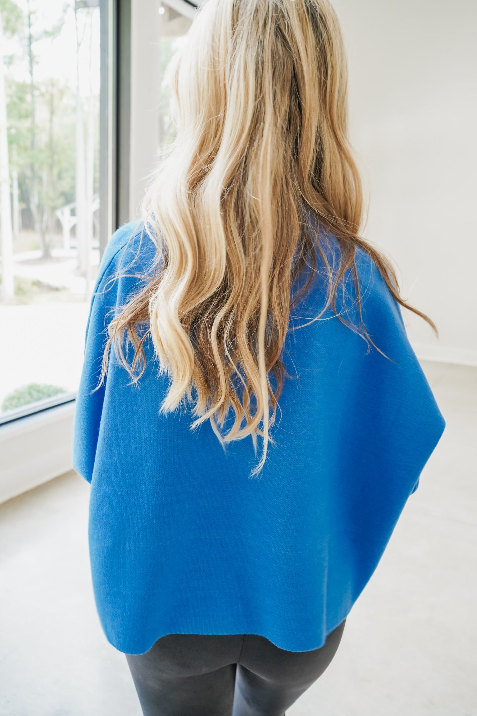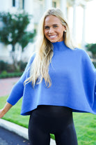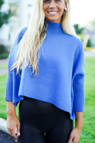 Oversized boxy sweater with fitted rib turtleneck & 3/4 sleeves