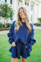 Stay effortlessly cool in the Anna Set! This playful duo features a classic crewneck cropped sweatshirt paired with a matching sweatband skort. The skort’s drawstring waistband ensures a comfy, adjustable fit, while its flared silhouette and built-in shorts offer both style and ease of movement. Perfect for laid-back days with a fun twist!