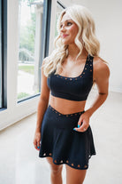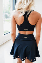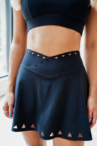Gear up for victory on the court or trail with this high-rise tennis skirt featuring comfortable inner shorts and a flattering V-waist. Designed with fashion-forward laser-cut details, this skirt is perfect for matching with your favorite sports bras. Get ready to dominate your next match or run in style and comfort.