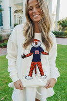 Get game day ready with this off-white crewneck sweatshirt featuring Auburn's iconic embroidered mascot. Soft and cozy, it’s perfect for cheering on your team with spirited style and comfort. War Eagle all the way!
