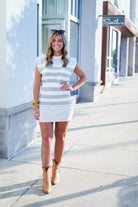 Feel effortlessly chic in the Casie Set! This sage green and white soft striped knit sleeveless crop top comes with a matching straight mini skirt, creating a cohesive and stylish look. Perfect for a summer day out or a casual evening, this set is sure to turn heads and make you feel confident and comfortable.