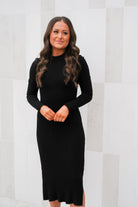 Introducing our stunning ribbed midi dress, it features a flattering mock neck and a midi length, perfect for any occasion! The ribbed knit fabric adds texture and style, while the side slit adds a touch of allure! Whether you're dressing up for a night out or keeping it casual, this dress is a versatile and chic addition to your wardrobe!
