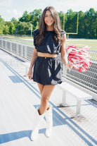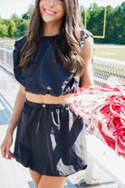 This playful Debra Anne Set features a shirred sleeveless crop top paired with a matching bubble mini skirt. The drawstring elastic waistband ensures a comfy, adjustable fit, making it perfect for fun days and nights out. Embrace effortless style with this coordinated duo that moves with you!