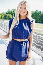 This playful Debra Anne Set features a shirred sleeveless crop top paired with a matching bubble mini skirt. The drawstring elastic waistband ensures a comfy, adjustable fit, making it perfect for fun days and nights out. Embrace effortless style with this coordinated duo that moves with you!