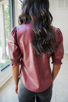 Our Vegan Leather Elastic Cuff Short Sleeve Top features a classic shirt collar, button-up front, three-quarter puff sleeves with ruffle trim, and elastic cuffs that ensure a snug and comfortable fit. Pair it with jeans for a casual look or dress it up with a skirt for a night out.
