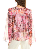 Introducing the Hutch Elio Top, a chic addition to your wardrobe from the brand Hutch. This stylish button-down shirt is perfect for women who love feminine details. The top features a beautiful pink combo color/pattern, with ruffle trim and flare sleeves for a touch of elegance. The triple button-and-loop closure adds a fun twist to a classic design.