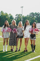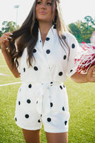 The Gracie Set brings playful charm with its white and black polka dot print. This breezy two-piece features a flowy open top with short cuffed sleeves and matching shorts for effortless style. The belted waistline lets you adjust for a perfectly cinched silhouette, making it ideal for sunny days and casual outings.
