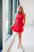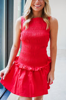 Unleash your carefree spirit with the Hadley Mini Dress in Red. This sleeveless dress features a smocked low waist for a flattering fit, while the ruffle trim adds a playful touch. Perfect for a day out in the sun or a fun night out with friends!