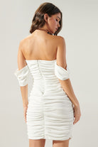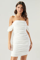 Dress to impress (or maybe just have some fun) in our Haze Dress! This flirty off-the-shoulder mini dress features ruched detailing for a playful, figure-flattering look. Perfect for a night out or a sunny day, this dress will have you feeling confident and stylish.