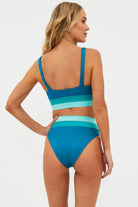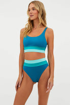 BEACH RIOT: The Heidi Bottom is our best-selling high-rise fit, with high-cut legs and cheeky bottom coverage featured in our satin-like fabric with cool teal Cosmic Colorblocking. Pair with the matching Mackenzie Top for the perfect summer set.