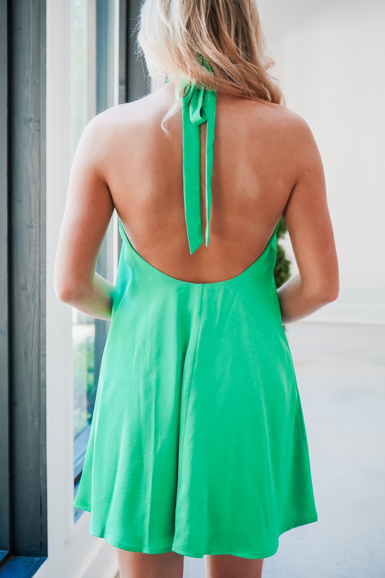 This satin mini dress features a playful halter neckline with a bow closure and an open back. Perfect for a night out or a special occasion, this dress adds a touch of elegance and sass to any outfit. Go ahead, turn heads in this Hoda Mini Dress!