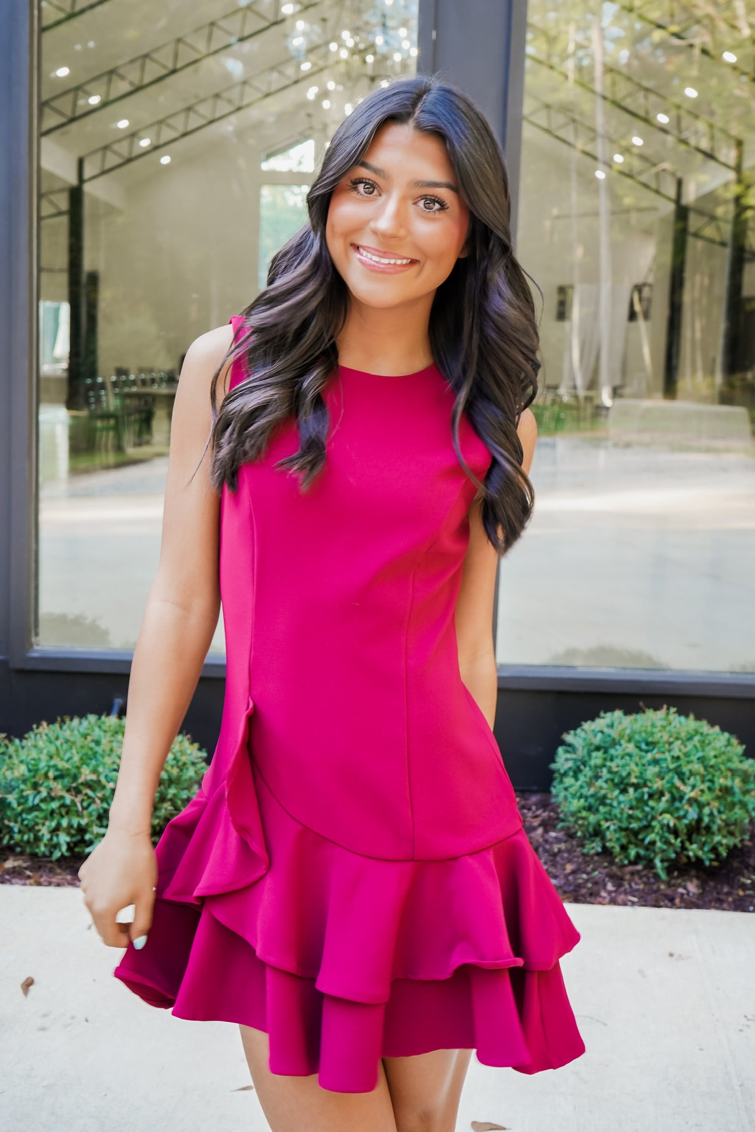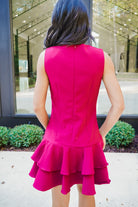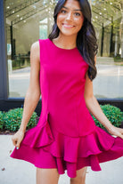 Turn heads in the Hope Mini Dress, a playful pick featuring a sleeveless, fitted silhouette that flatters every curve. The rich burgundy color adds warmth and charm, while the ruffle layered skirt hem brings fun, flirty movement to every step. Perfect for parties or special outings, this dress makes confident style effortless and unforgettable.
