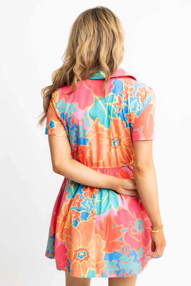 Make a splash in the Karly Mini Dress, bursting with bold floral prints! The playful cinch waist flatters your figure while keeping things fun and flirty. Perfect for sunny days and spontaneous adventures, this dress adds a pop of color wherever you go.