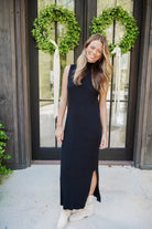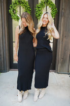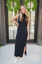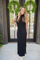 This sleek ribbed midi dress hugs your curves with a fitted silhouette that's both chic and comfortable. The sleeveless design and high mock neck add a touch of elegance, while the side leg slit lets you move with flair. Perfect for turning heads day or night!