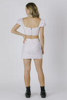 Add a sweet twist to your wardrobe with the Kylie Top in Lilac Floral. This cropped corset features a charming embossed ditsy floral pattern, a flattering square neckline, and short puffy sleeves for a playful vibe. The lined bust and corset bodice provide shape and support, while the back zipper ensures a perfect fit.
