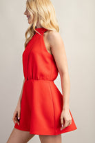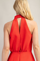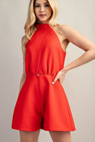 Be the life of the party in our Lala Romper! This red sleeveless halter style romper features a wrap style bodice and a back keyhole detail, making you stand out in any crowd. Perfect for a night out or a fun day in the sun. (FINAL SALE - Don't miss out!)