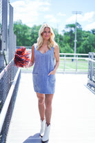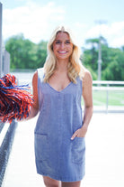 The Lincoln Dress in light wash denim is the ultimate combination of style and functionality. Featuring a v-neckline, side pockets, and thick adjustable straps, this overall mini dress is perfect for any occasion. Stay chic and comfortable at the same time with this must-have dress!