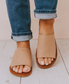 Breeze through your day in the Livia Sandal, a flat slide in a soft nude shade. These easygoing sandals combine comfort and effortless style, making them the perfect go-to for sunny strolls or casual hangouts. Slip them on and step out with playful, laid-back charm.