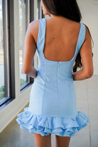 Experience the perfect blend of femininity and sophistication with our Lorna Mini Dress! This sleeveless dress features a square neckline and ruffle bubble hem for a playful touch, while the wide shoulder straps and low open back add a subtle allure. Elevate your style and make a statement at any event.