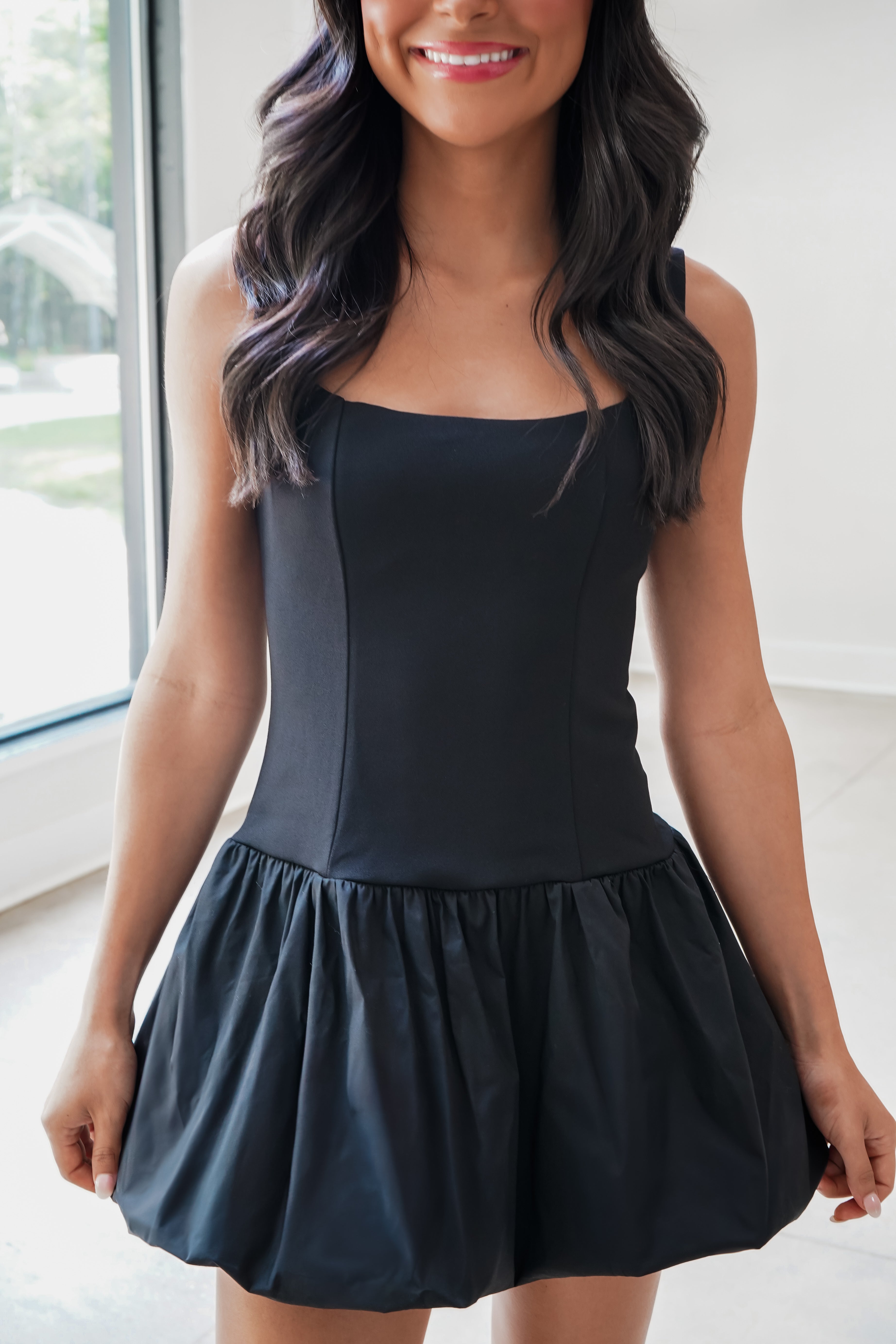 The Marlo Mini is your new night-out favorite! A sculpting bodice meets a trendy bubble skirt for the perfect mix of flirty and bold. Adjustable shoulder straps let you find your perfect fit, making this flirty mini an easy pick for rooftop drinks, birthday dinners, or any night that calls for a little extra fun!