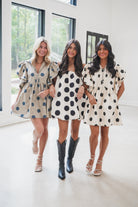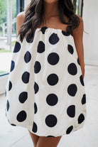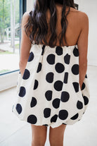 Step into fun and flirty style with the Meagan Mini Dress! This cream strapless tube dress features bold black polka dots that pop, while the playful bubble hem with scrunch elastic adds a touch of bounce to your look. The back zipper closure ensures a perfect fit, making it easy to slip on and dance the night away. Perfect for sunny days or lively nights, this dress brings a cheerful vibe to any occasion.