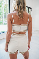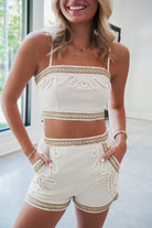 Get ready to turn heads with the Mesa Set! This playful duo features a tribal embroidered lace square crop top with delicate thin shoulder straps and a woven hem trim for a touch of charm. Paired with matching boxy shorts that come with handy side pockets, it’s the perfect blend of style and comfort for your sunny adventures.