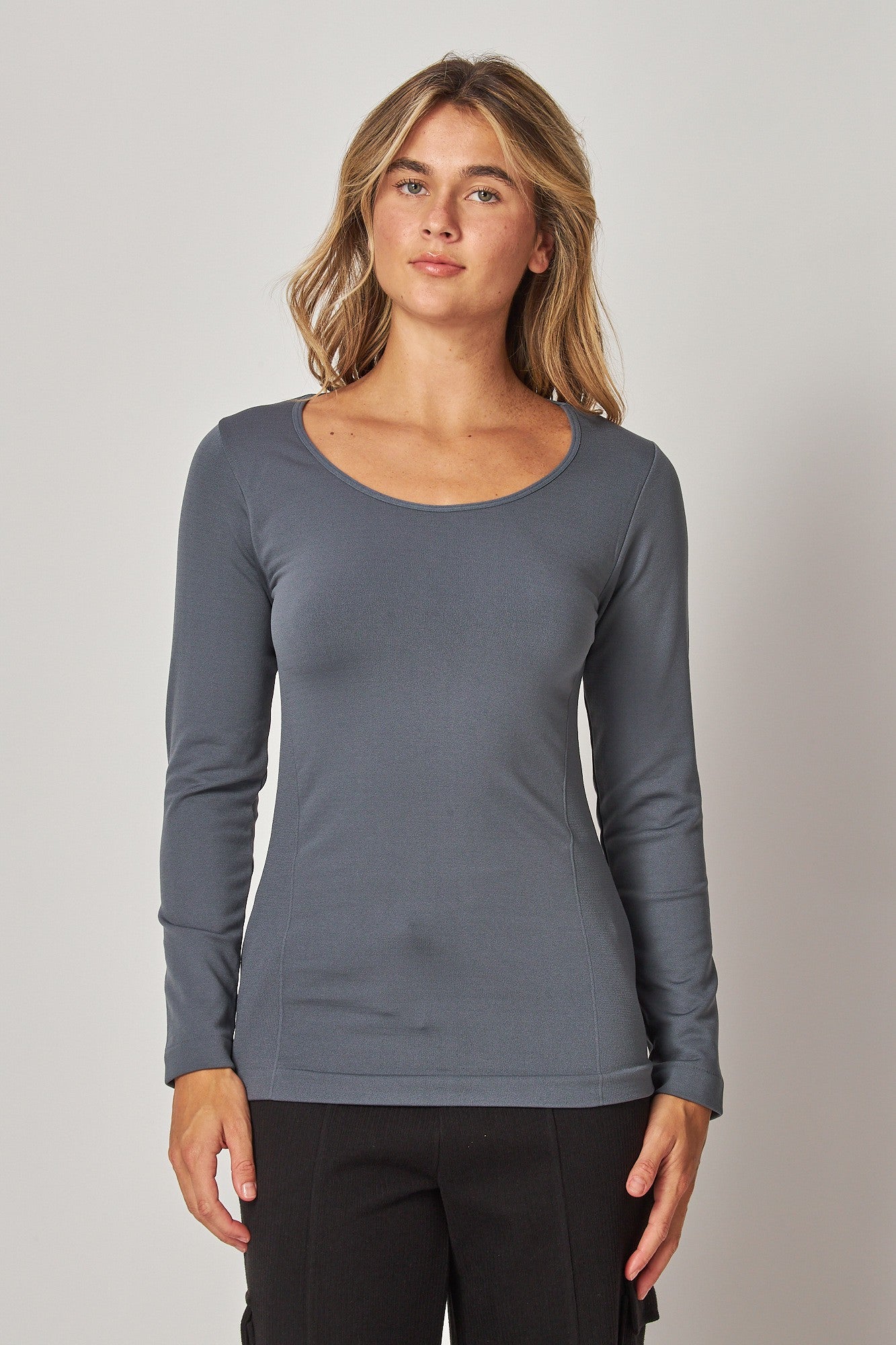 Cozy meets cute with the Mya Top in lava gray. This seamless knit features a round neckline and long sleeves, all lined with soft fleece to keep you warm without bulk. Perfect for layering or rocking solo, it’s your new playful essential for chilly days!