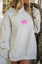 Cozy up in this oversized heather grey sweatshirt that's giving effortless cool. The mock neck keeps things snug while the relaxed fit lets you move freely—perfect for those days when comfort is non-negotiable. The real star? That adorable baby pink woven patch label stitched front and center with "ALABAMA" spelled out in bold. It's the kind of piece that works solo or layered, making it your new go-to for casual vibes and weekend hangs.
