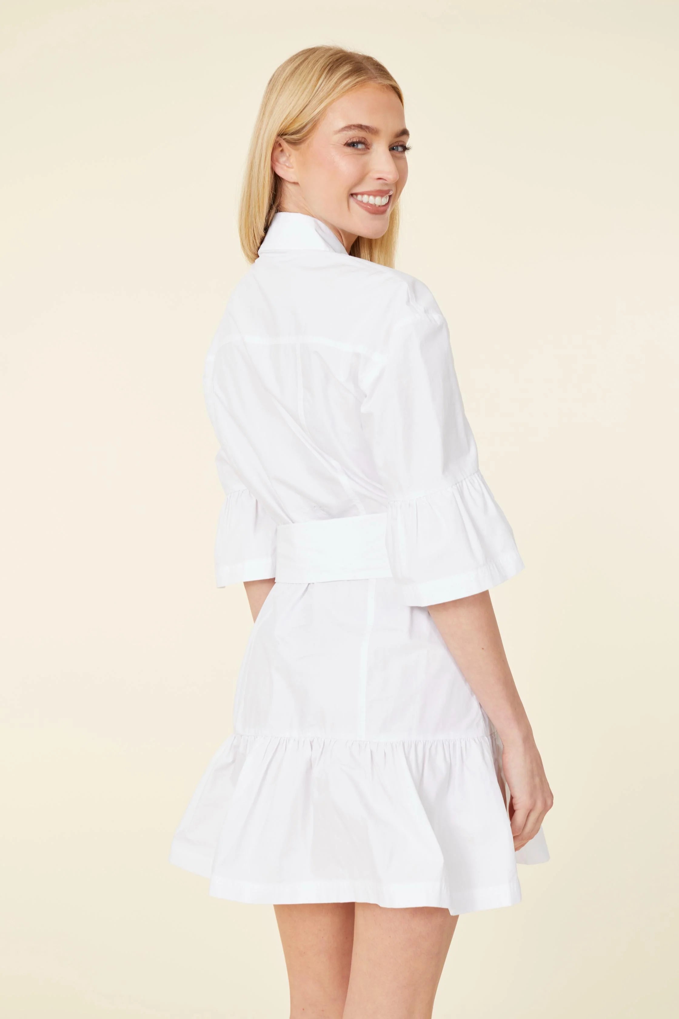 Poplin Ruffle Detail Dress - White - FINAL SALE