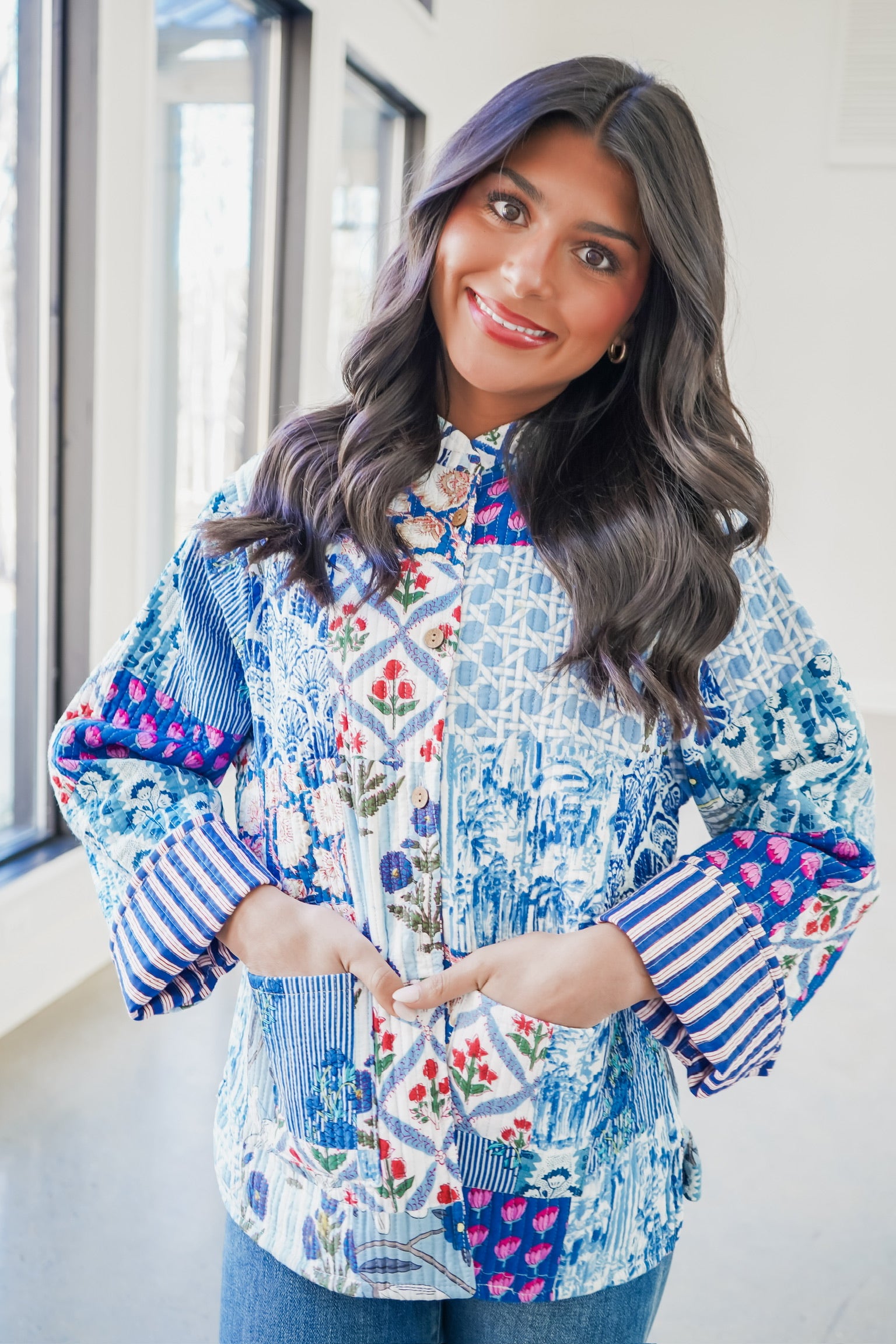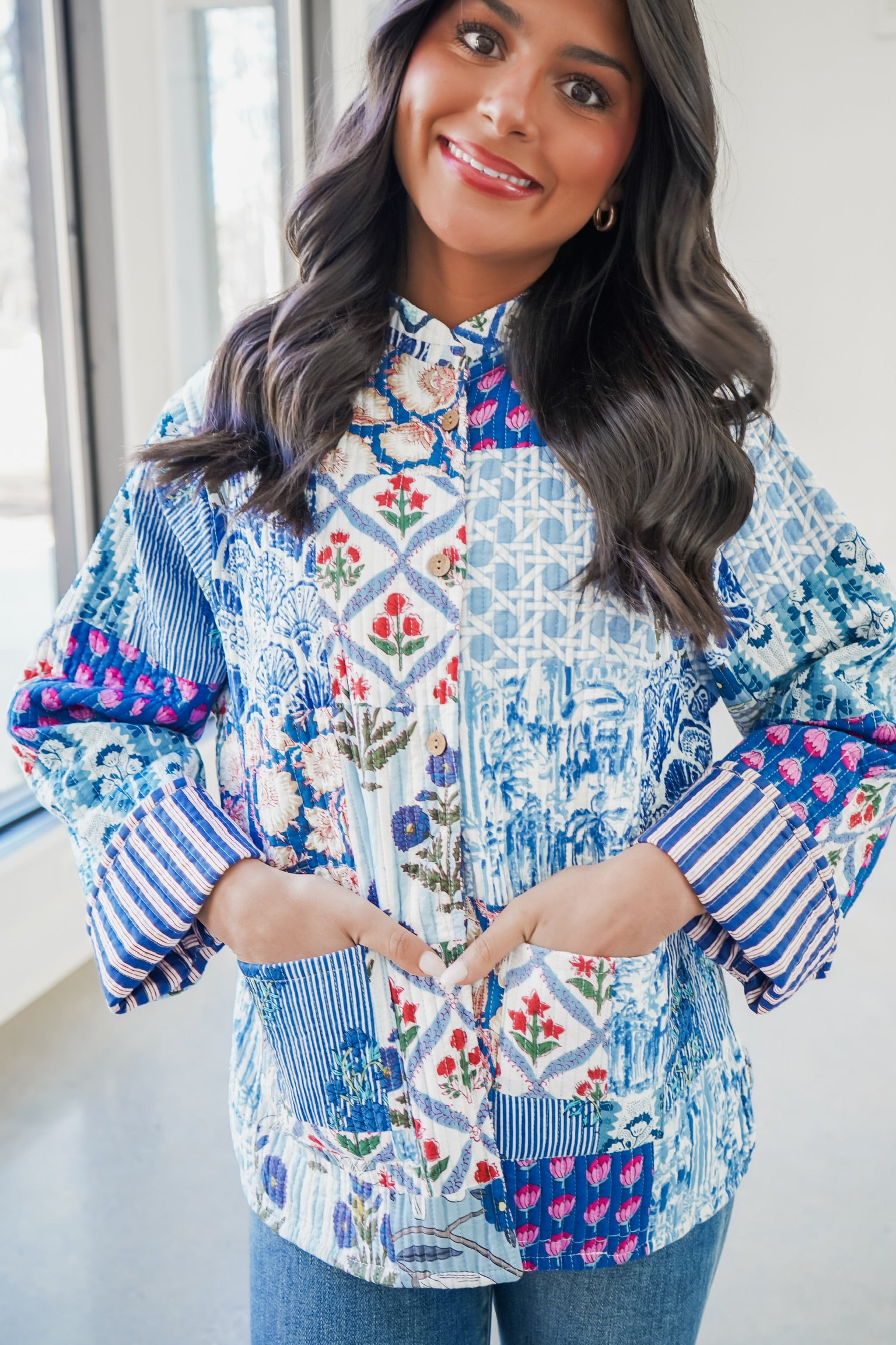 Layer up in style with this eye-catching quilted patchwork jacket! Featuring a striking mix of textures and tones, the full front button closure offers easy on-and-off convenience while the quilted construction provides lightweight warmth without bulk. Perfect for transitional seasons, this jacket combines bold design with practical comfort. The patchwork detailing adds visual interest to any outfit, making it an instant wardrobe standout that works as hard as you do.