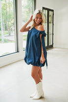 Turn heads in the Raya Mini Dress, featuring a playful voluminous balloon hem and a chic one-shoulder design. The navy hue adds a touch of elegance, while the shoulder bow tie closure brings a flirty finish. Perfect for dancing the night away or making a statement at your next event.
