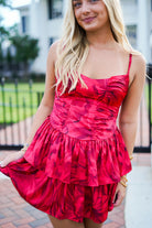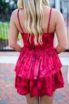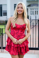 The Ruby Dress will have you blooming with style! This mini dress features a vibrant red floral print and all the flirty details - ruched bodice, tiered ruffle skirt, and a sweetheart neckline. With its open back and smocked panel, you'll look sweet and sassy.