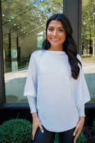 South’s best selling light weight sweater! This year ‘round style transitions perfectly into the fall season! Boat neckline with a balloon fit. Effortlessly tuck into denim or a skirt or style with leather leggings!