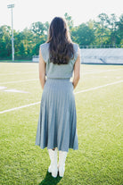 This sleeveless Samara Midi Dress combines cozy softness with playful style. Featuring a ribbed neckline and a flattering mid waistline, it flows into a long accordion midi skirt that moves with you. Perfect for adding a fun twist to your everyday wardrobe!