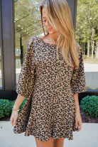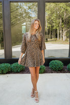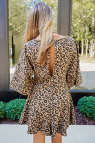Bring out your wild side with the Shayna Romper, featuring bold leopard print and playful wide balloon sleeves. The fit-and-flare skirt reveals hidden shorts for comfortable movement, while convenient side pockets add a practical touch. A wide keyhole back detail completes this flirty, fun look perfect for day or night adventures.