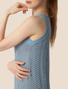 SLEEVELESS CREW NECK MAX DIRESS IN 3D WAVE EYELET W/ SCALLOPED HEM