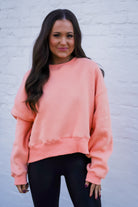 A South STAPLE in the cutest new colors! Adorable peach orange ribbed crewneck sweatshirt to pair with any shorts - perfect for on the go! Pair with your favorite sneakers for a classic athleisure fit!