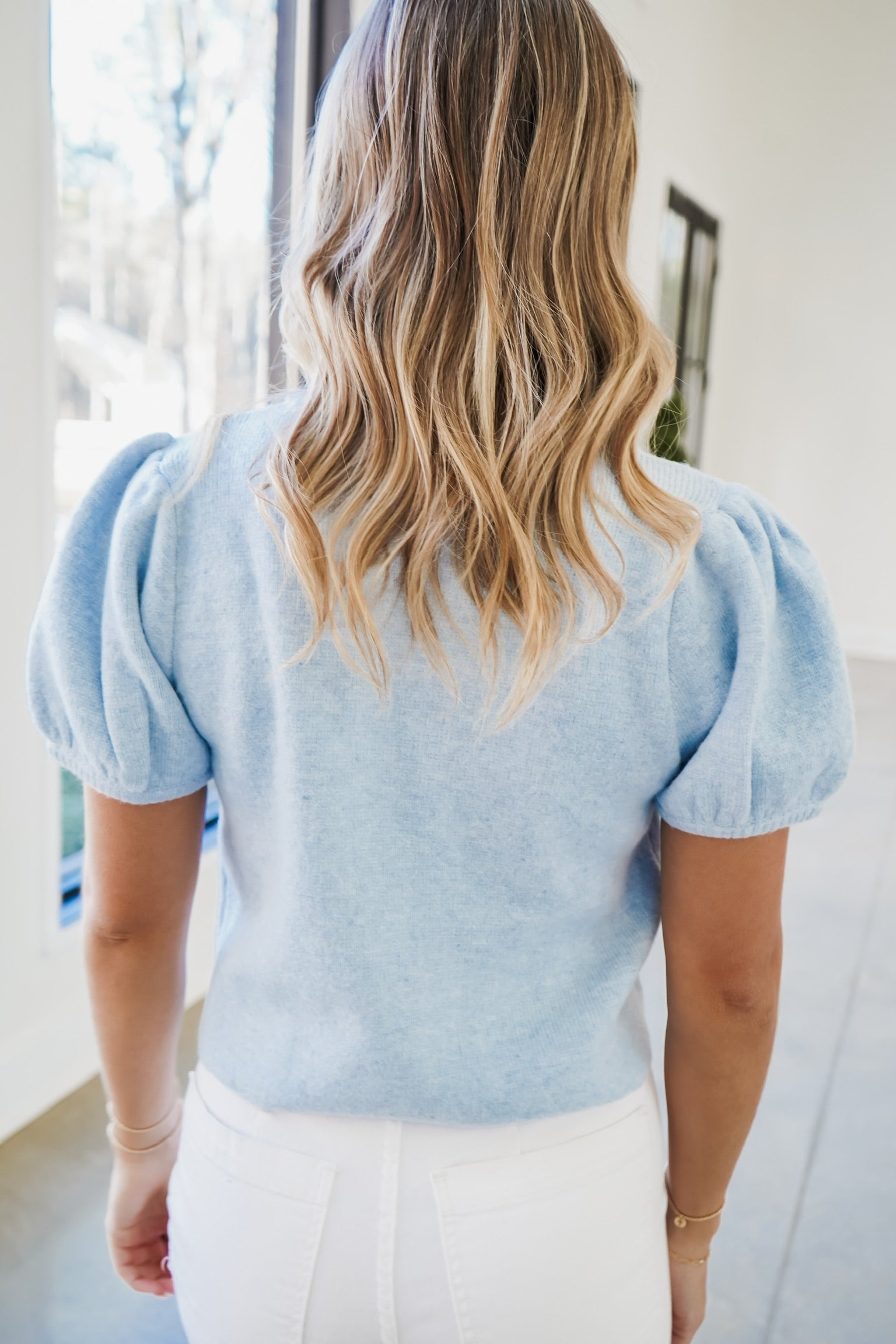 Bring a fun twist to your wardrobe with the Stacy Top. Featuring playful puff short sleeves and a classic crew neck, this button-down knit top combines comfort with flair. Perfect for layering or wearing on its own, it adds a sweet, stylish touch to any outfit. Embrace easygoing charm with a hint of sophistication in this must-have closet favorite.